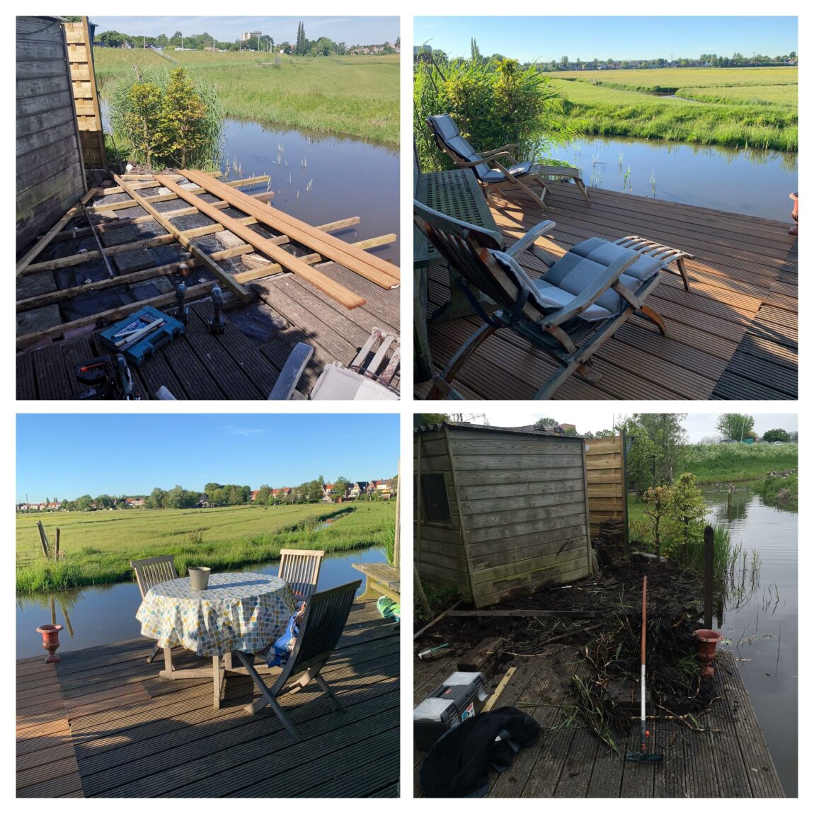 De bestaande vlonder moest worden uitgebreid. Er is nu ruimte voor de lounge stoelen om te genieten van het uitzicht